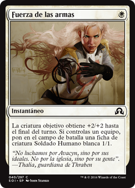 Como truco de combate es algo pobre por tres manás, pero tiene el potencial de dar una buena hostia si el oponente está desprevenido. Id con cuidado a la hora de bloquear y no tendreis que temer ésta carta.